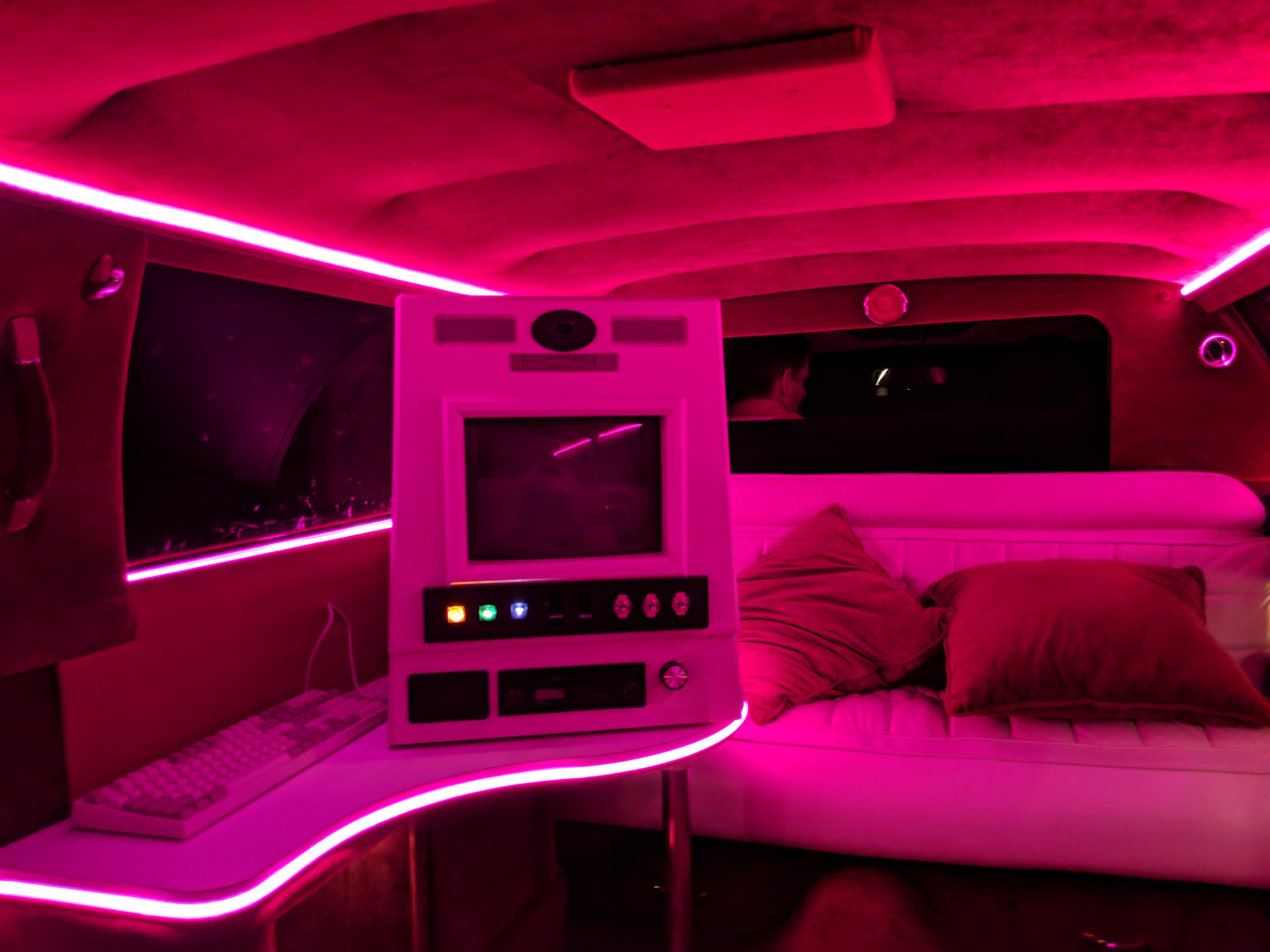 This one was a doozy! The project was to take a limousine from the ’80s and convert it into a funky Lyft car. The interior also needed to feature a retro computer that would take photos of passengers and send a GIF of the photos to the phone of a passenger.