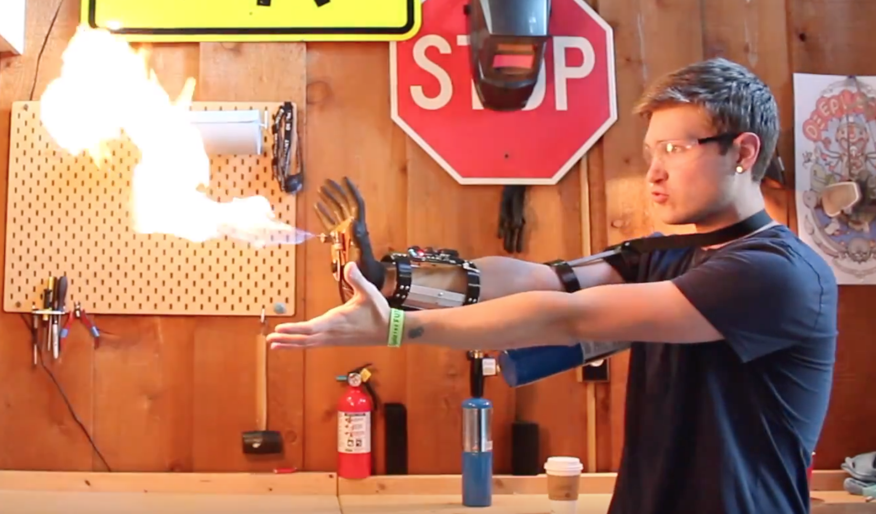 Alright, here it is. The culmination of 8 years of messing with fire in the garage. My third and final (?) pass at a wrist-mounted flamethrower!