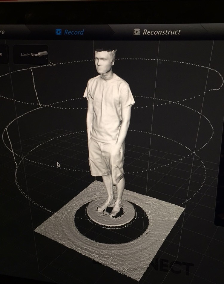 While this process is happening, Scanect is running a capture to actually take in the data from the Kinect and form the mesh.